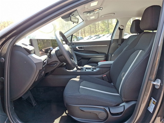 ONE OWNER, Black Cloth, 16" x 6.5J Aluminum Alloy Wheels, 4-Wheel Disc Brakes, 6 Speakers, ABS brakes, Air Conditioning, Alloy wheels, AM/FM radio: SiriusXM, Apple CarPlay & Android Auto, Auto High-beam Headlights, Brake assist, Delay-off headlights, Dual front impact airbags, Dual front side impact airbags, Electronic Stability Control, Emergency communication system: Bluelink+, Exterior Parking Camera Rear, Four wheel independent suspension, Front anti-roll bar, Front Bucket Seats, Fully automatic headlights, Illuminated entry, Knee airbag, Low tire pressure warning, Occupant sensing airbag, Option Group 01, Overhead airbag, Panic alarm, Power door mirrors, Power steering, Power windows, Radio data system, Radio: AM/FM/HD/SiriusXM, Rear anti-roll bar, Rear side impact airbag, Rear window defroster, Remote keyless entry, Security system, Severe Weather Kit, Speed control, Speed-sensing steering, Speed-Sensitive Wipers, Steering wheel mounted audio controls, Traction control, Variably intermittent wipers, Wheel Locks. 28/38 City/Highway MPG FWD I4 Portofino Gray 2025 Hyundai Sonata SE 8-Speed Automatic